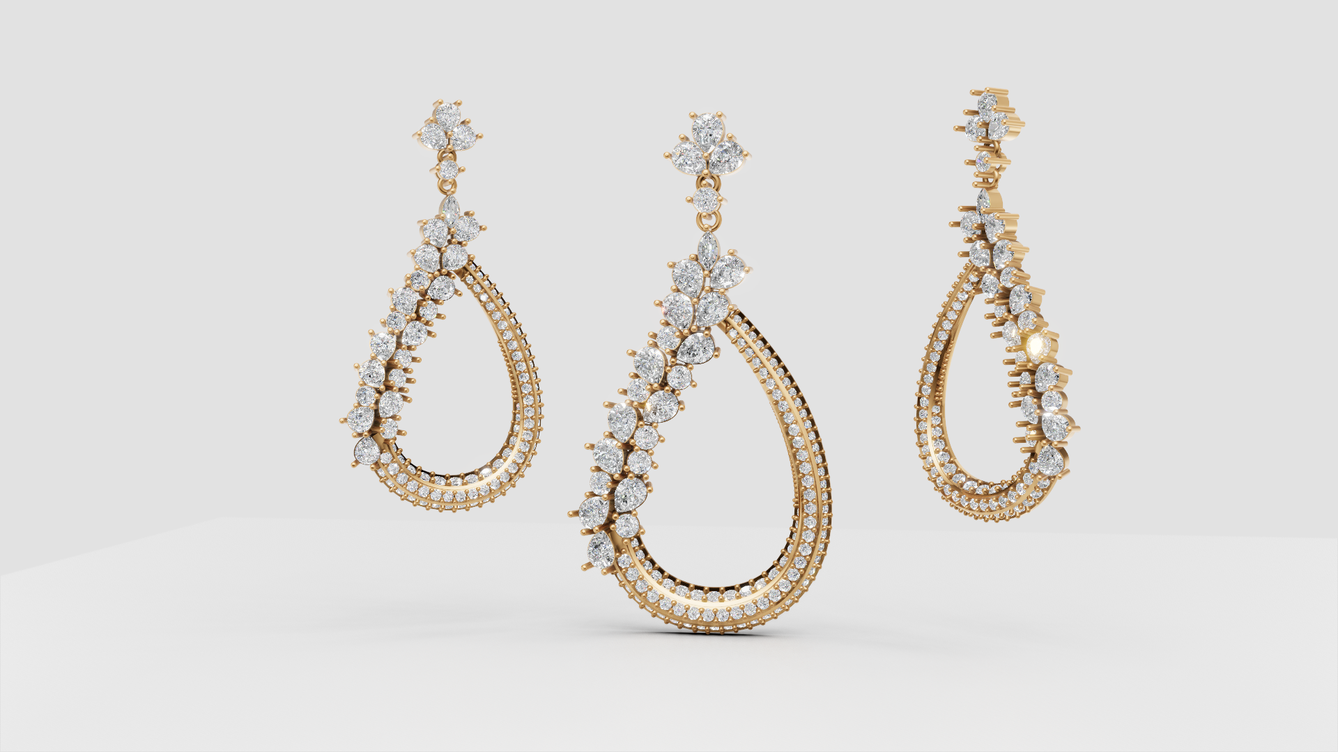 "شبیهسازی واقعگرایانه جواهرات با رنگبندی طلا، پلاتین و نقره قبل از تولید"